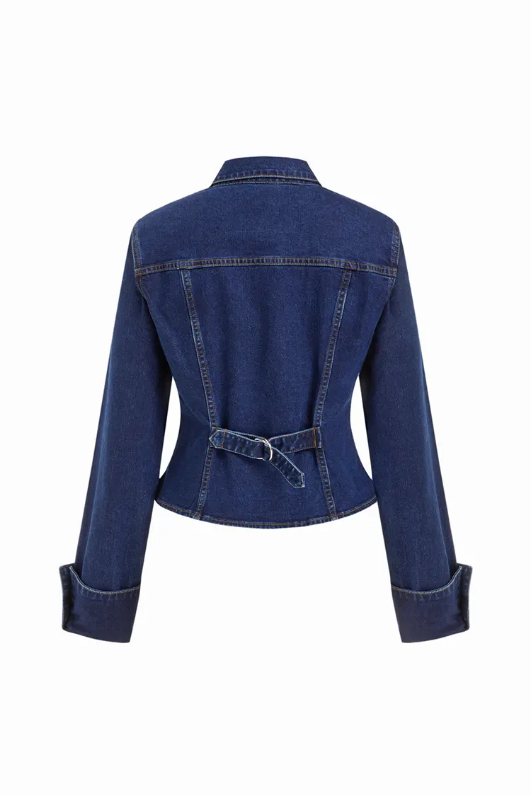RUIFAN is een professionele fabrikant en leverancier van dameskleding in China. De Women's Fitted Washed Denim Blouse is een moderne, op maat gemaakte denim blousejas. We hebben een slank tailleontwerp, eenvoudige lijnen en minimalistische decoraties aangenomen, en het heeft een prachtige en veelzijdige uitstraling.