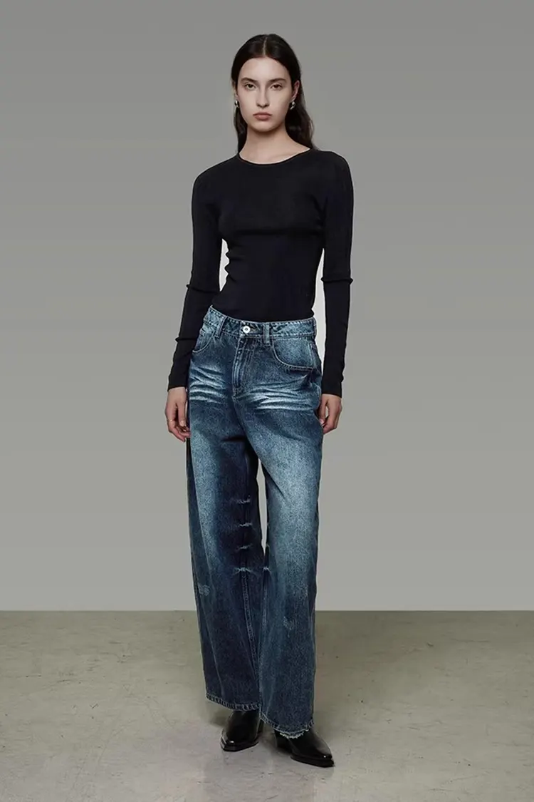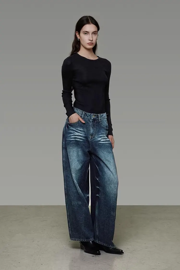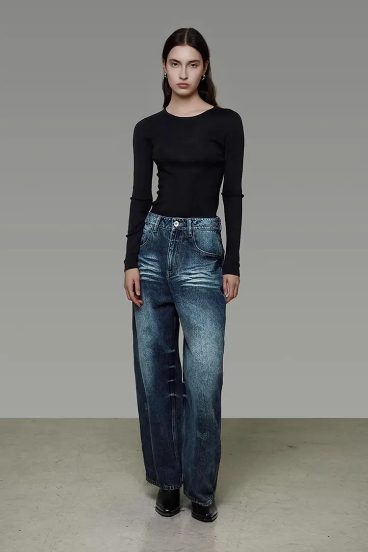 Gewassen denim damesbroeken met wijde pijpen ondersteunen volledige aanpassing van kleur, maat en logo. Ze kunnen worden aangepast aan de merkpositionering en doelgroep van de klanten. De minimale bestelhoeveelheid is 300 stuks en de levertijd bedraagt 30-45 dagen. Ze kunnen worden verzonden vanuit Shanghai en grote binnenlandse havens, met flexibele opties voor logistieke methoden zoals zeevracht en expreslevering. Het gehele traject van advies, monstername, productie tot verzending wordt met één-op-één service verzorgd. Het monsterbedrag kan worden terugbetaald na het plaatsen van de bestelling.