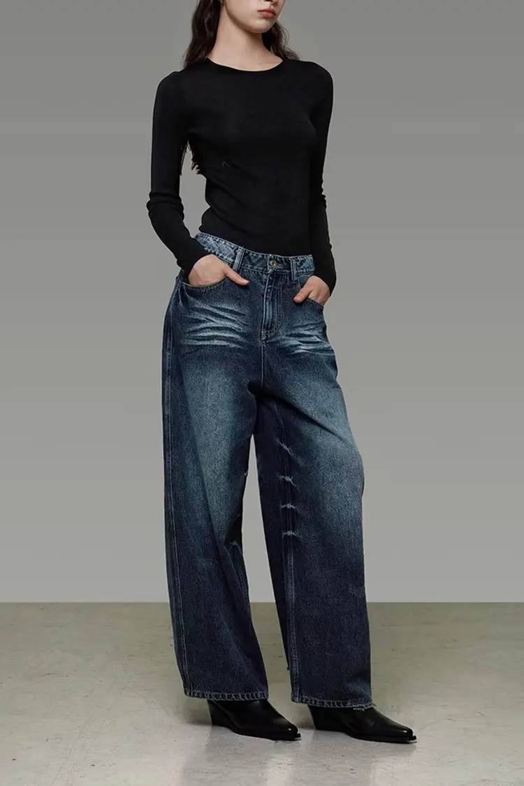 Hottags: Gewassen denim wijde broek voor dames, leverancier, groothandel